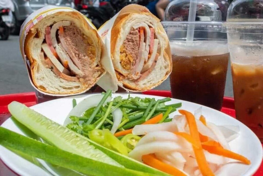 - Bánh Mì Việt Nam – “Vua” của ẩm thực đường phố: Nổi tiếng toàn cầu và luôn nằm trong top những món sandwich ngon nhất thế giới. Điểm đặc biệt nằm ở lớp vỏ bánh giòn tan, ôm trọn phần nhân phong phú bên trong từ pate béo ngậy, chả lụa, thịt nướng đến dưa chua, hành ngò và nước sốt đậm đà. Một ổ bánh mì “full topping” chính là biểu tượng cho nhịp sống hiện đại và năng động của Sài Gòn.