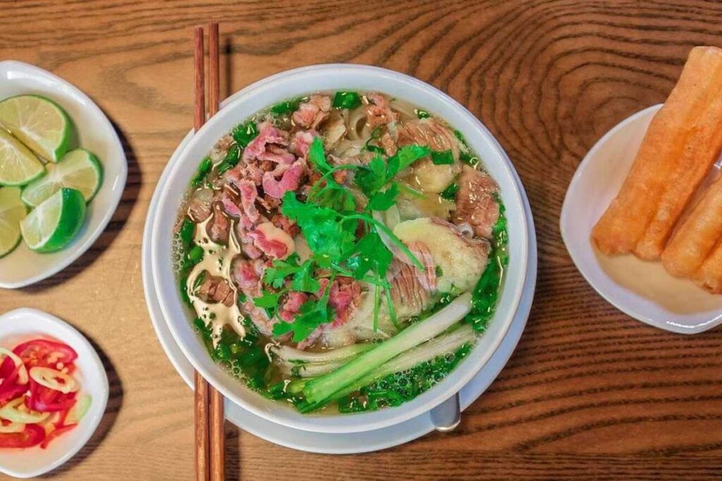 - Phở Hà Nội – Linh hồn thực sắc Việt: Được mệnh danh là “món ăn quốc dân”, Phở Hà Nội quyến rũ thực khách bởi nước dùng trong vắt, ngọt thanh từ xương ống ninh kỹ, quyện cùng mùi thơm đặc trưng của gừng nướng, quế, hồi. Một bát phở nóng hổi với bánh phở mềm mại, thịt bò tái lăn và hành hoa tươi rói chính là khởi đầu hoàn hảo cho ngày mới tại thủ đô.