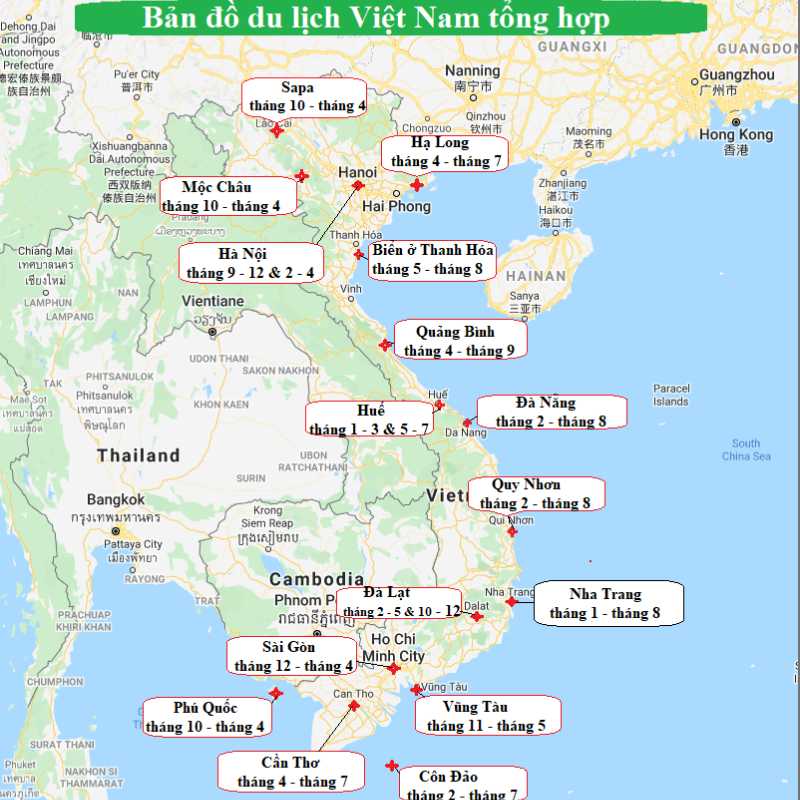 - Miền Nam (TP.HCM, Cần Thơ, Phú Quốc): Vùng đất của nắng ấm quanh năm